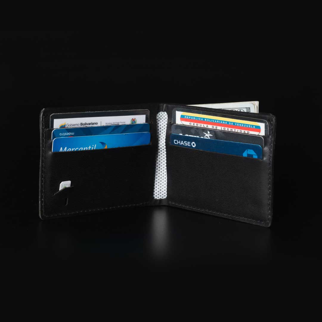 En ella guardas 6 tarjetas bancarias o documentos tipo carnet, tus billetes desplegados para que no se les marquen dobleces que los deterioran y una SIM card.